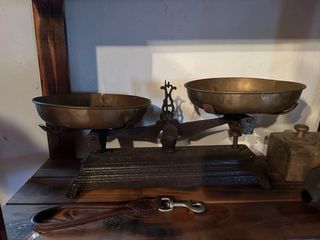 Báscula antiguas, modelos varios, también hay plan has antiguas con su soporte - Diseño clásico de balanza. - Soporte de hierro forjado. - Platillos de latón. - Base robusta de hierro fundido - Contrapesos calibración