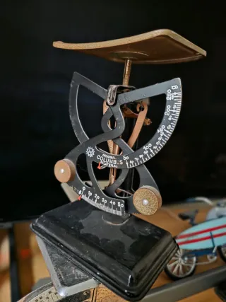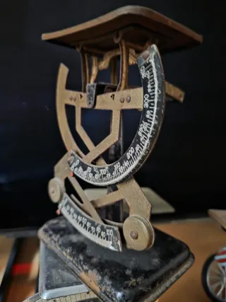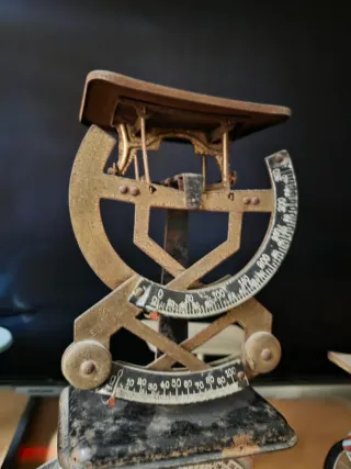 Básculas antiguas Diseñadas principalmente para pesar correspondencia en oficinas o el hogar. Funcionan mediante un sistema de palancas y contrapesos para medir el peso.