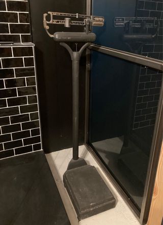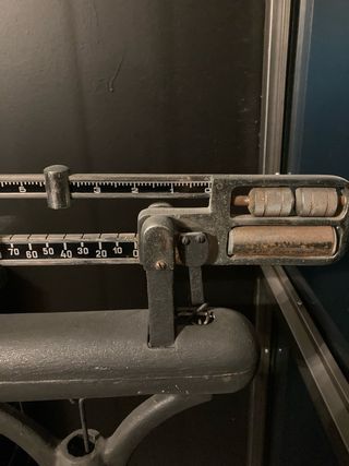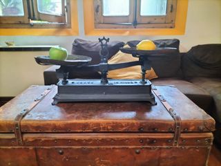 Báscula de peso antigua, ideal para coleccionistas o decoración. - Fabricada en hierro fundido. - Diseño clásico y robusto.