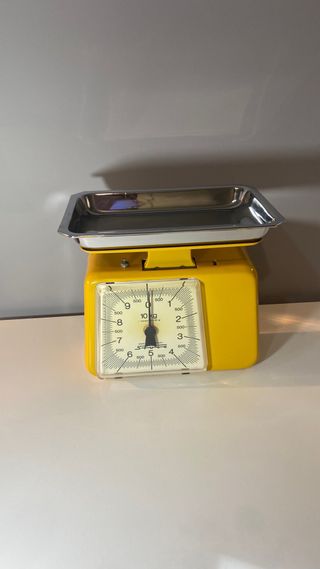 Bascula amarilla para pesar hasta 10kg. Calibrable y de acero inoxidable. Autentica de la marca Stube. La bandeja mide 14x24. Estilo vintage que resiste al tiempo, para pesar con el pesar del tiempo. En mi perfil estoy vendiendo muchas cosas, me harias un favor si le echas un ojo. Igual encuentras algo que te guste ☺️