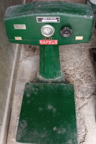 Báscula antigua de la marca Rafels, modelo A-25, ideal para coleccionistas o decoración. Se encuentra en buen estado de conservación, aunque muestra señales del paso del tiempo. Es, en gran parte, de aluminio. No envío, entrego en un punto determinado de Bilbao. - Marca: Rafels - Modelo: A-25 - Tipo: Báscula de plataforma - Material: Metal
