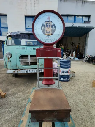 Báscula antigua de ultramarinos,con el visor del pesaje a ambos lados para ser visto por cliente y comerciante.Tiene una antiguedad circa. 1940 ,fabricada en Barcelona y distribuidas con la marca CELY. ideal para coleccionistas o decoración.Su funcionamiento ea perfecto.Como se ve en las fotos ,su estado estético ha sufrido sobre todo en la pintura,no por eso ,pierde un ápice de su encanto,belleza. - Diseño clásico. - Materiales resistentes.