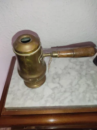 Pieza antigua de latón, ideal para coleccionistas o decoración. - Material: Latón - Mango: Madera - Diseño: Tradicional