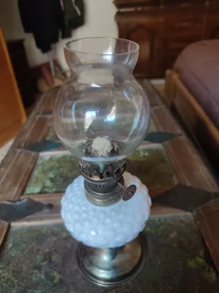 Antiguo quinqué cristal leche