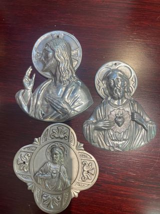 Placa en estaño laminado de gran calidad. Artículo antiguo, artesanal Corazón de Jesús. En tres diferentes medidas, a elegir una de ellas, hasta agotar existencias. Cada unidad al precio de 7€