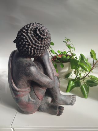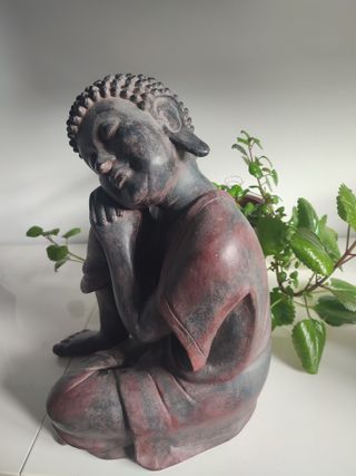 Figura de Buda zen con un diseño sereno, ideal para crear un ambiente de paz en tu hogar o consulta. - Acabado en tonos oscuros y rojizos. - Representación de Buda en pose de meditación/descanso. Figura de Buda decorativa en excelente estado. Diseño sereno y elegante, perfecto para salón, consulta, terraza cubierta o espacio espiritual. 📏 Medidas: 38,5 cm alto × 26 cm ancho 🪨 Material: resina / piedra artificial ✔️ Sin golpes ni desperfectos ✔️ Muy decorativo y bien conservado