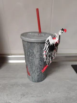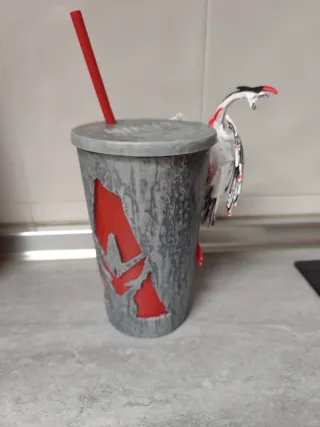 Vaso con diseño inspirado en la película Avatar. Incluye tapa y pajita. - Se enciende una luz roja. - Diseño con textura de roca y detalles rojos. - Figura decorativa de criatura de Avatar. - Pajita roja reutilizable.