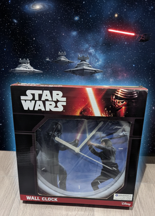 ¡Decora tu habitación con el duelo más icónico de la galaxia! Se vende reloj de pared oficial de Star Wars que representa el combate entre Darth Vader y Luke Skywalker. Estado: Nuevo a estrenar, con su caja original y envoltorio protector. Detalles: Licencia oficial Disney / Lucasfilm. Diseño circular con marco blanco. Ideal para coleccionistas o regalo. Funciona con 1 pila AA (no incluida). Un accesorio imprescindible para cualquier fan de la saga que quiera darle un toque Jedi a su casa. #starwars #darthvader #lukeskywalker #reloj #decoracion #disney #coleccionismo #regalo #geeks #setup #vader