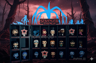 Expositor temático para figuras Funko Pop, diseñado e impreso en 3D para coleccionistas de Stranger Things. Puedes pedir tu logo en material luminiscente! El diseño simula la Casa de Vecna y el Mundo del Revés. Se abre en el centro para revelar múltiples compartimentos y se pliega para proteger tu colección. Características: · Capacidad: Más de 24 huecos + 1 espacio superior grande. · Temática: Casa del Mundo del Revés, con enredaderas y el logo de Stranger Things en la parte superior. (No incluye las figuras, solo el expositor). Etiquetas: strangerthings funko netflix decoracion impresion3d will once