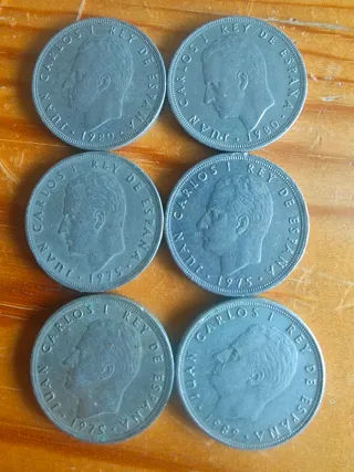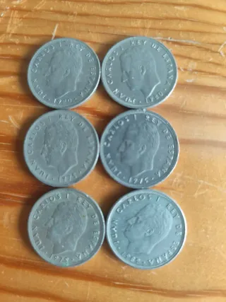 6 Monedas 5 Pesetas 1975, 1980, 1989