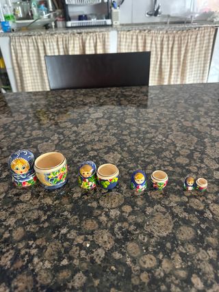 Conjunto de muñecas rusas Matrioska. - Diseño tradicional pintado a mano. - Variedad de tamaños. - Piezas de madera.