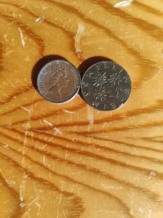 Conjunto de tres monedas de diferentes países. - Moneda de Helvetia (Suiza) 1967. En 1967, la moneda oficial en Suiza era el franco suizo (CHF), introducido en 1850. En ese año, las monedas circulantes de 1/2, 1, 2 y 5 francos estaban fabricadas con un 83,5% de plata (plata .835) antes de cambiar a cuproníquel, (como es está). poco después debido al aumento del valor del metal. - Moneda de Dammark (Dinamarca) con fecha 1993. - Moneda de Nederland (Países Bajos).