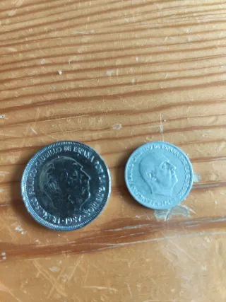 2 Monedas España 25 PTAS 1957 y 50 CTS 1966