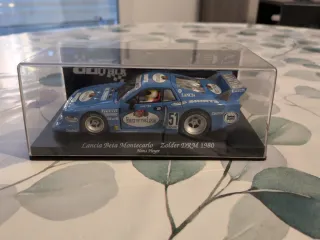 Coche de slot Lancia Beta Montecarlo de la marca FLY. - Modelo: Zolder DRM 1980 - Piloto: Hans Heyer - Decoración: Fruit of the Loom - Escala: 1/32