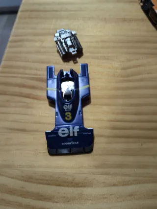 Carrocería de Slot para Scalextric, ideal para despiece o proyectos personalizados. Presenta un diseño deportivo en color azul con detalles amarillos. - Diseño tipo Fórmula 1. - Detalles de patrocinador 'Elf'. -Se hace precio por lote