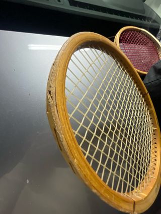 Dos raquetas de tenis antiguas, coleccionistas o decoración - Raqueta Slazenger Challenger No.1. 40€ - Raqueta Jauffret Fiber Glass. 25€ (tiene picotazo en el lateral de ahi su precio)