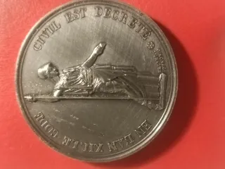 Medalla conmemorativa francesa. - Inscripción CIVIL EST DECRETE EN BAN XII LE CODE - Inscripción FRANCAIS DEVON D - Figura alegórica central.