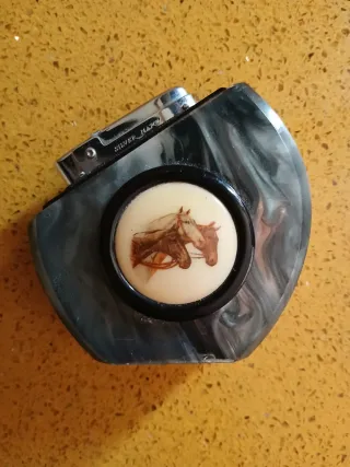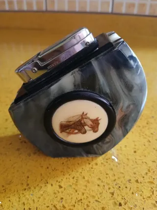 Encendedor de sobremesa con motivos hípicos. De los años 70. ENVÍO EN 24H.