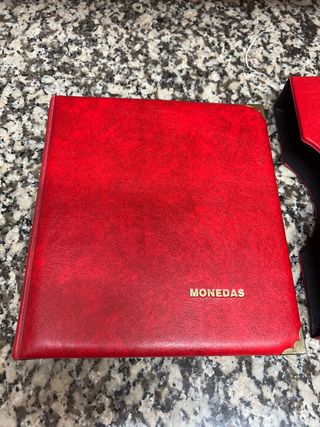 Álbum de tapas rojas para coleccionar monedas. - Cubierta de material sintético. - Detalle MONEDAS en dorado. - Esquinas reforzadas. Lleva 15 hojas son para poner las monedas en cartones