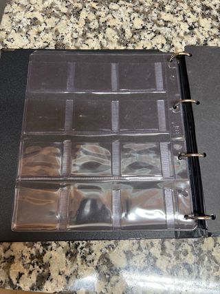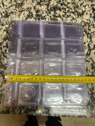 Hoja de plástico transparente para organizar y proteger monedas. - Material: Plástico. 10 hojas - Diseño: Transparente. - Formato: Hoja para álbum. Para cartones de monedas