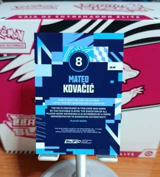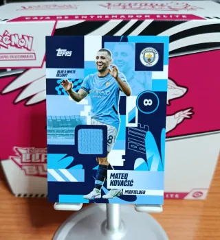 Carta de Mateo Kovacic con trozo de camiseta usada por el jugador de la colección Topps Team Set Manchester City 2024/2025