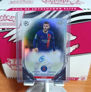 Carta firmada por Lucas Hernández de la colección Topps Chrome UEFA Club Competitions 2023/2024. Firma auténtica garantizada por Topps.