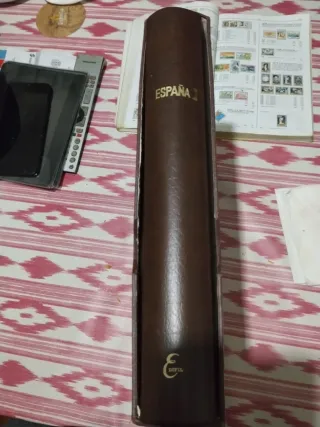 Álbum de lujo Edifil para colecciones de sellos de España. Cubierta marrón con el título ESPAÑA y un logo.incluido cajetín - Tapa dura.