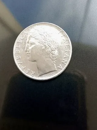 Moneda de la República Italiana con fecha de 1957. Presenta un perfil de mujer con una corona de laurel. - Grabado REPUBBLICA ITALIANA. - Grabado ROMAGNOLI en la base del cuello. Valoro ofertas