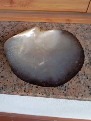 Preciosa concha de nácar, originaria de Nueva Caledonia. Ideal como vaciabolsillos o elemento decorativo. 6×15 cm - Material: Nácar. - Origen: Nueva Caledonia. - Acabado iridiscente.