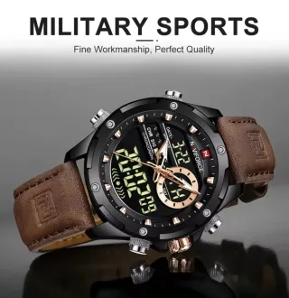 Reloj Naviforce con diseño militar, combina pantalla analógica y digital. - Correa de cuero marrón. - Estuche negro. - Resistente al agua (WR). - Función de cronógrafo. #policía #guardiacivil #ejército #militar #GRS #vigilantesdeseguridad #ambulancias #GEO #proteccióncivil #emergencias #urgencias #fuerzasycuerposdeseguridad #táctico #ARS #UAR #GOES #Fuerzasespeciales #Bripac #Legión #UPR