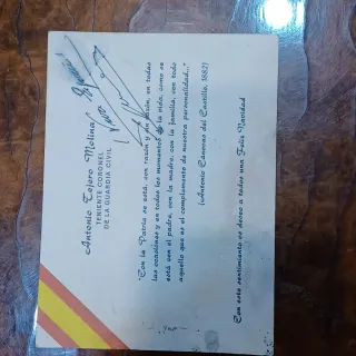 Felicitación de Navidad firmada por Antonio Tejero Molina, Teniente Coronel de la Guardia Civil. - Incluye cita de Antonio Cánovas del Castillo. - Mensaje de Feliz Navidad al final.