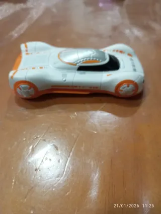 Coche de juguete de Star Wars, parte de una colección limitada. - Diseño futurista en blanco y naranja. - Detalles plateados en la cabina.