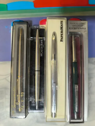 Bolígrafos y portaminas antiguos en su caja origin