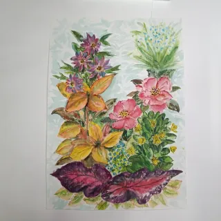 Acuarela original de flores "Retro". Pintada a mano . Tamaño A4, 21*29,7cm. No incluye marca. - Técnica de acuarela sobre papel. - Ideal para decoración.