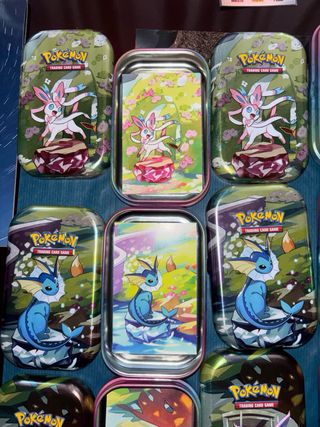 Conjunto de seis latas metálicas de Pokémon Trading Card Game. Cada lata presenta un diseño diferente con ilustraciones de Pokémon. - Incluye 6 latas. - Diseños variados de Pokémon. - Material: Metal.