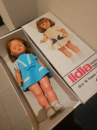Muñeca Lidia de los años 70, una muñeca habladora . Mide aproximadamente 60 cm. - Muñeca de colección. - Incluye caja original. - Fabricada por Novo-Gama S.A.