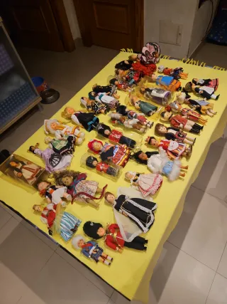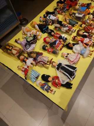 Conjunto de 36 muñecas antiguas, cada una con su propio estilo y vestimenta. - Variedad de diseños y épocas. - Ideal para coleccionistas. - Cada muñeca es única.