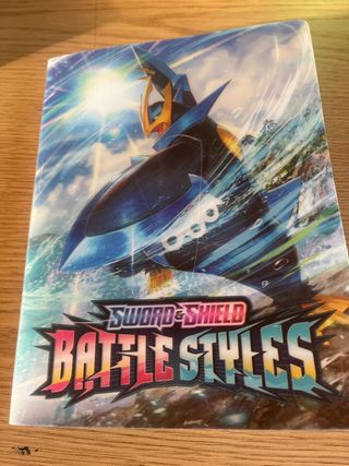 Álbum para coleccionar cartas de Pokémon de la expansión Espada y Escudo: Battle Styles. Ideal para mantener tus cartas organizadas y protegidas. - Diseño inspirado en la expansión Battle Styles. - Espacio para múltiples cartas.