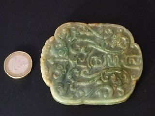 Precioso colgante de jade con un intrincado tallado. Dinastía Han. - Material: Jade - Diseño: Tallado detallado