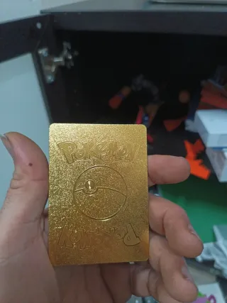 Carta coleccionable de Charizard GX con acabado dorado y diseño especial. - Diseño de Charizard GX. - Acabado metálico dorado. - Ataque Tormenta Carmesí y Furioso GX.