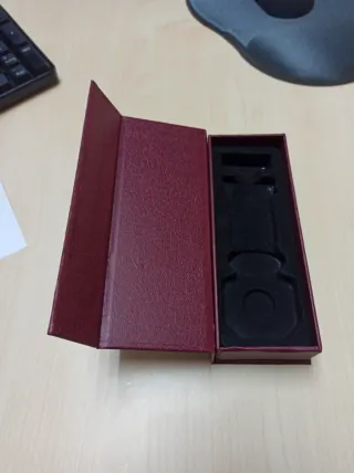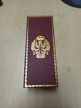 Estuche para medalla militar con diseño de águila imperial y corona. - Color burdeos. - Borde dorado decorativo.