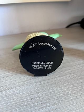 Figura Funko Pop de Yoda de Star Wars. Fabricado por Funko LLC en 2020. - Licencia de Lucasfilm Ltd. - Fabricado en Vietnam. - Número de modelo: FAC-053571-21021.