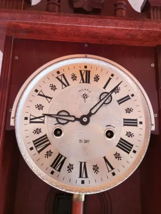 🕰En venta elegante reloj de pared mecánico de la reconocida marca Polaris, estilo clásico europeo. Una pieza perfecta tanto para coleccionistas como para decoración de interiores con un toque rústico, señorial. (La llave no esta incluida, pero si no tienes, tengo en stock, para vender) 🕒Mecánica de cuerda (sistema de 31 días), lo que garantiza una gran autonomía entre cargas. ⚜️Caja de madera maciza noble,muy bien conservada y con tallas ornamentales en la parte superior (copete). 🔱medidas aprox:63cm alto, 30cm ancho,14cm profundo ✅️ en excelentes condiciones, fisicas y funcionamiento, recien revisado por relojero.