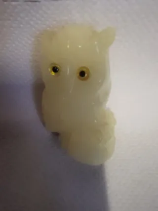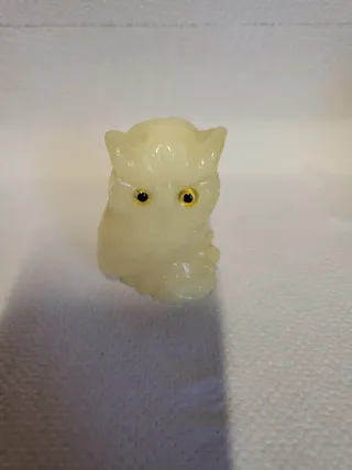 Pequeña figura decorativa de un búho, ideal para añadir un toque encantador a cualquier espacio. - Diseño de búho con ojos azules y plumaje detallado. - Base verde con detalles amarillos que simulan ramas o hojas.