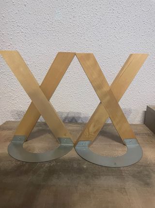 Pequeño daño en la base. Originales sujetalibros de los años 90 con un diseño moderno y geométrico. - Estructura de madera y metal. - Base circular. - Acabado en tonos beige y dorado.