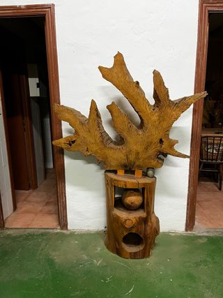 Pieza de arte única tallada en madera. - Diseño orgánico y natural. - Base de tronco con huecos decorativos. - Acabado rústico. PRECIO A CONSULTAR