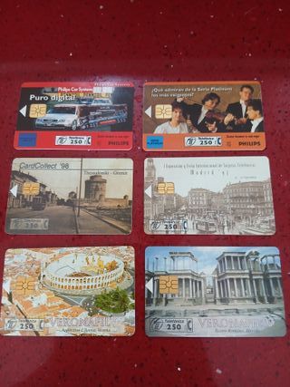 Lote de seis tarjetas telefónicas de España, cada una con un valor de 250 pesetas. Incluyen diseños variados. - Tarjeta Bruxelles - the atomium - Tarjeta Philips N°1 en Europa - Tarjeta Philips - Sonido increíble - Tarjeta CardEx 97 - Tarjeta Anfiteatro L'Arena de Verona (Italia) - Tarjeta Teatro Romano de Mérida (España) Cabitel Telecard Phonecard Schede telefoniche Schedetelefoniche Schedetelefonica Belgacom Télécom france Cartetelefoniche telecarte Carta telefonica Tarjeta de cabina Telephone