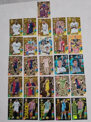 Colección de cromos de fútbol Adrenalyn 24-25. - Incluye cromos de la serie Balón de Oro.3€ unidad - También contiene cromos de la serie Momentum. 5€ unidad - Incluye cromos de la serie Míticos Invencibles. 20€ unidad - Se incluyen cromos de la serie Edición Limitada. 2€ unidad - Contiene cromos de Balón de Oro Excellence y Balón de Oro Fantástica. 5€ los dos - Incluye cromos de Master Mister y Crack.5€ los dos - Se incluyen cromos de Champions y Balón de Oro. 4€ la unidad - Pide tu pack y te valoramos