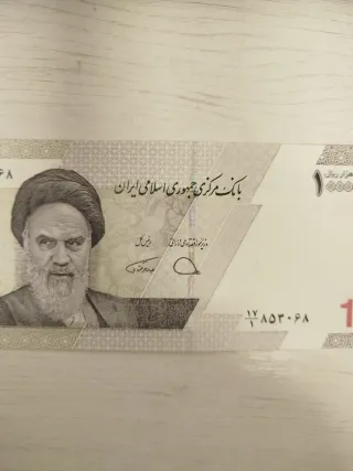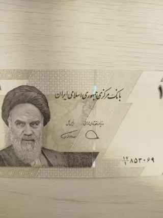 Billete de 10000e la República Islámica de Irán. Presenta el retrato de Ruhollah Jomeini. - Banco Central de la República Islámica de Irán. - Serie: ۱۷۸۵۳۰۶۹