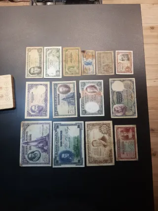 Lote de 14 billetes de España circulados de distintos valores y años. Todos diferentes y alguno bastante circulado... Se envían los billetes de las fotografias. Posibilidad de envío ordinario bajo responsabilidad del comprador. Crea tu lote o anuncio con los billetes que quieras.